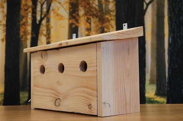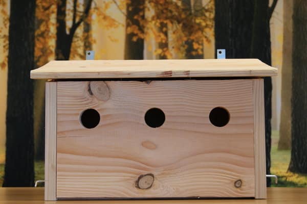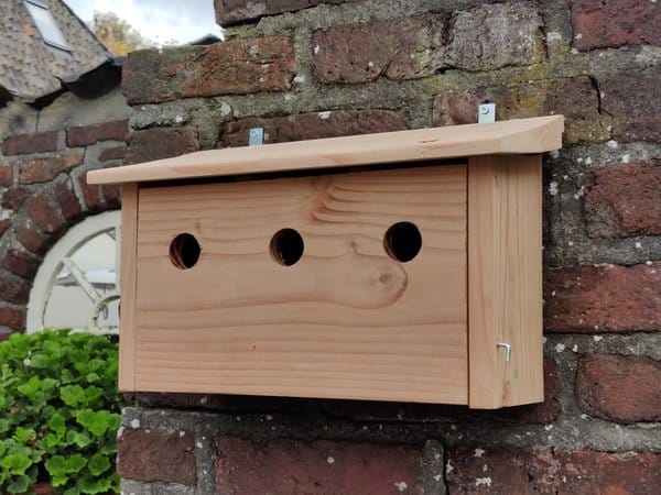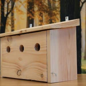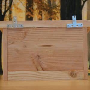 Wij raden aan om de nestkasten in de maand oktober schoon te maken, na het broedseizoen. De voorzijde van deze nestkast kan opengemaakt worden middels een duimschroef aan de zijkant.