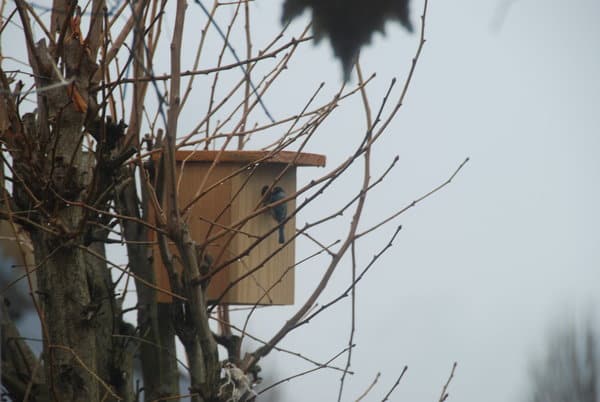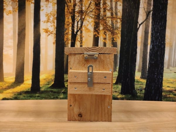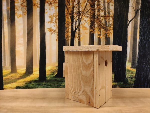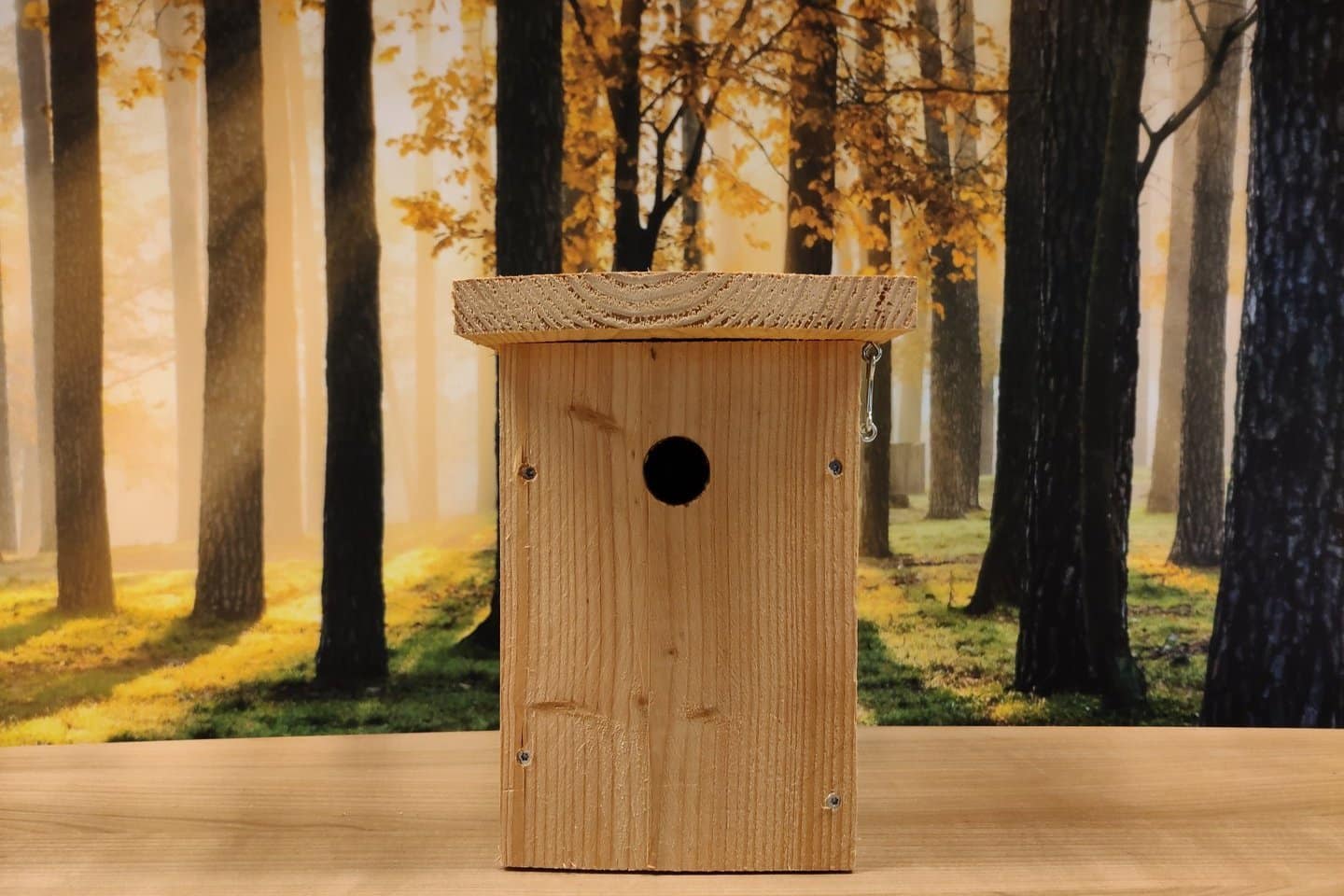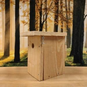 Wij raden aan om de nestkasten in de maand oktober schoon te maken, na het broedseizoen. De bovenzijde van deze nestkast kan opengemaakt worden door middel van een windhaakje.