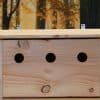 De nestkast is gemaakt van FSC gecertificeerd douglashout. De nestkast is ook voorzien van een ophangstuk t.b.v. ophanging aan een boom of muur.